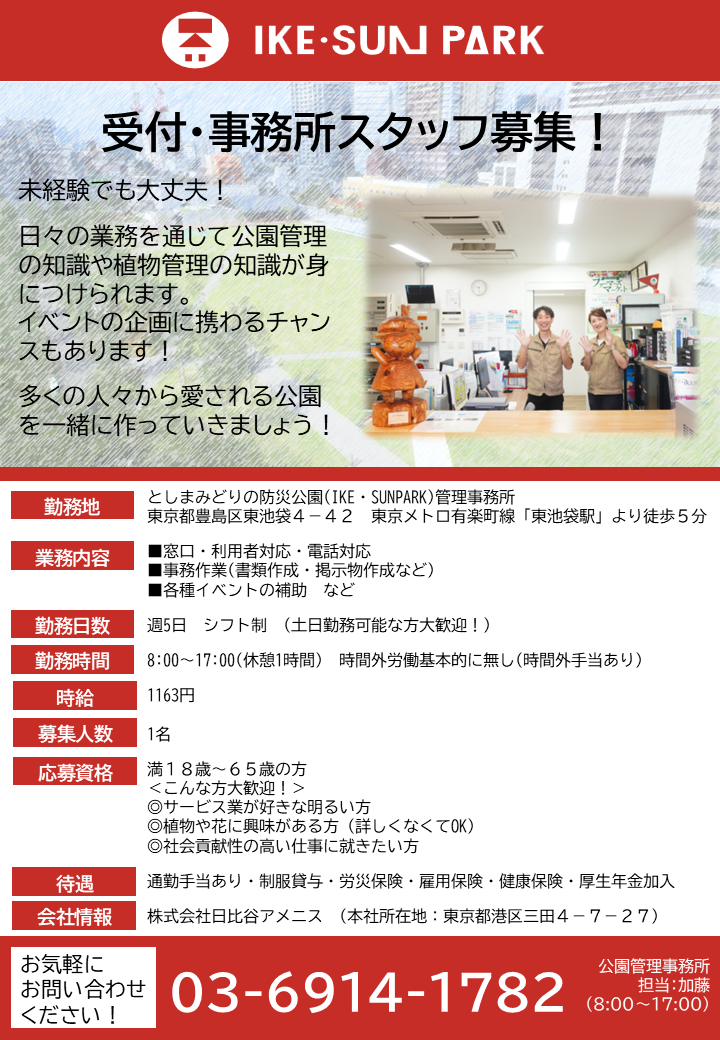 東京都豊島区東池袋4-42 「としまみどりの防災公園 管理事務所」 宛