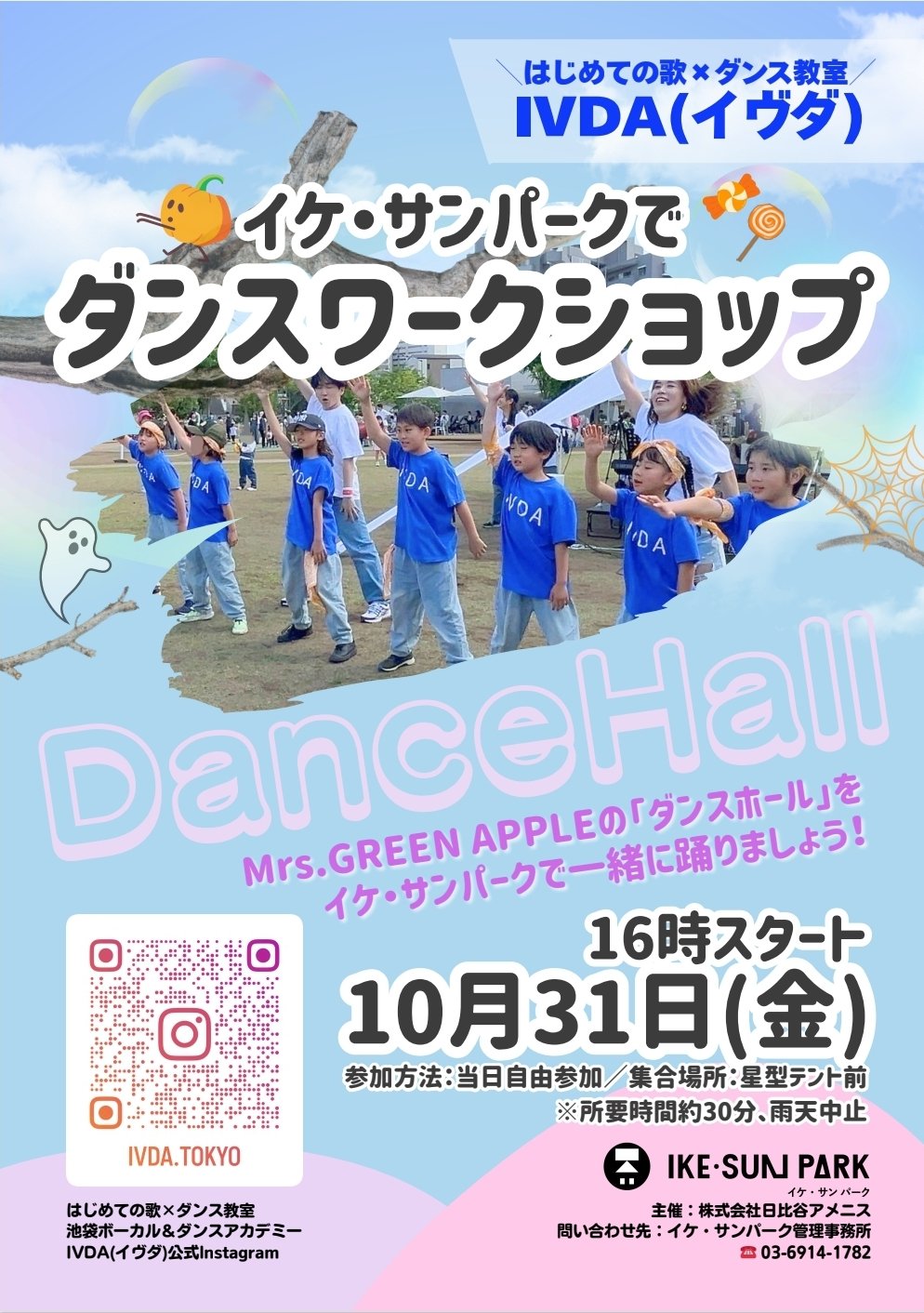JP EN 新着情報 TOP 新着情報 【10月31日(金)】ダンスワークショップ 開催! NEWS 2025.09.17 【10月31日(金)】ダンスワークショップ 開催! 放課後にみんなでダンス💃 ダンスワークショップ開催! 12月の周年祭へ向けて振り付けをレッスン🎶 ぜひ、イケサンパークで一緒に踊りましょう! 講師:はじめての歌×ダンス教室 IVDA(イヴダ) 日時:10月31日(金)16時〜16時半 雨天中止 集合場所:星形テント前 参加方法:当日自由参加 前へ一覧に戻る次へ